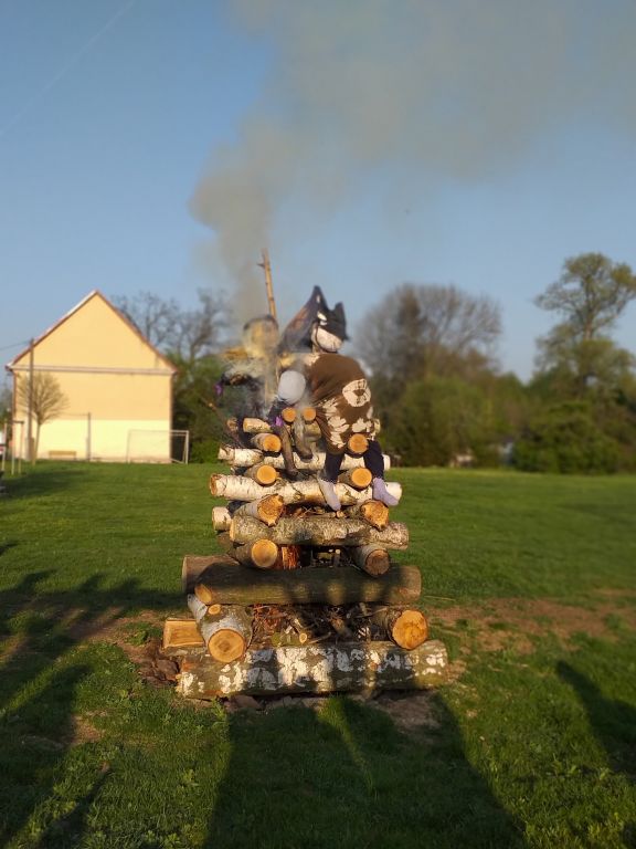 V půl sedmé byla zapálena připravená hranice, k níž se přesunula zábava pokračující do pozdních nočních hodin.