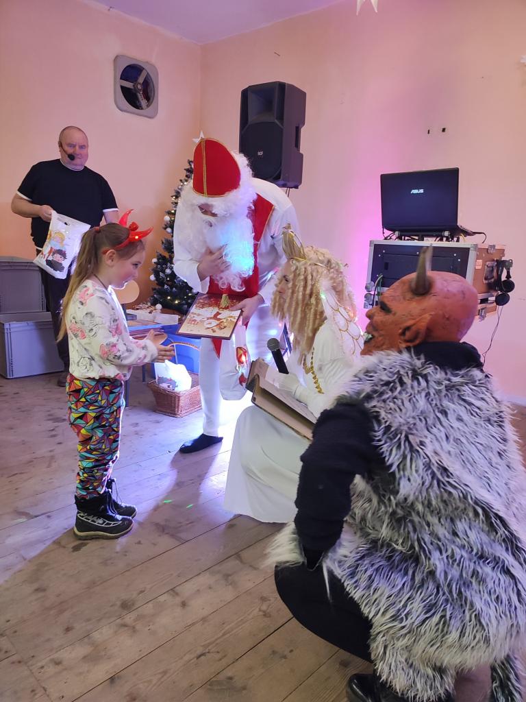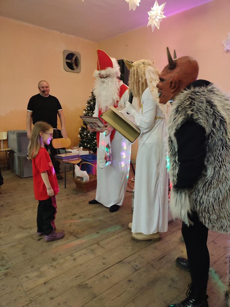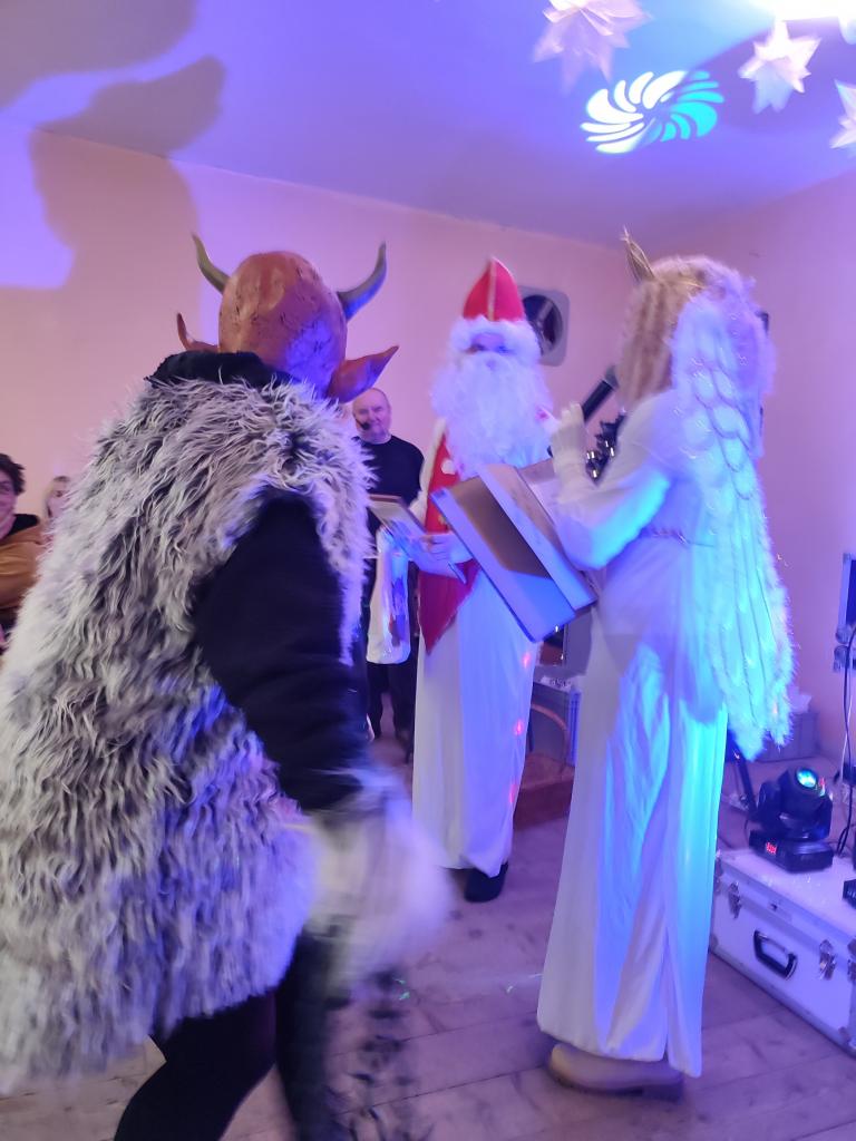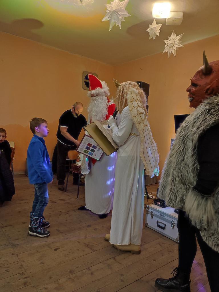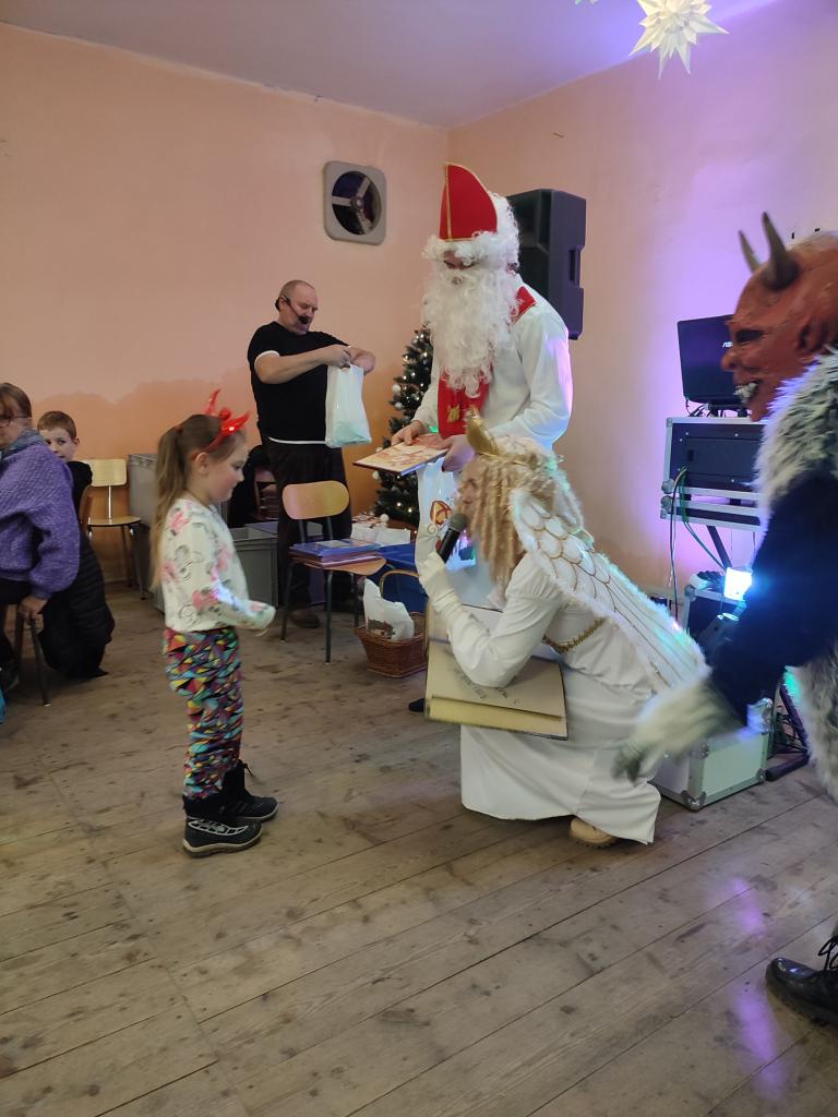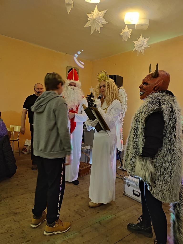 Po návštěvě kostela se kulturní dění přesunulo na místní zámeček, v jehož prostorách byla připravena Mikulášská nadílka pro děti a mláděž. V rámci hudební produkce Jiřího Střelce měly děti možnost si zatančnit, zasoutěžit a přivolat Mikuláše, Anděla a čerta. Čert byl letos hodný a nakonec si nikoho do pekla neodnesl, i když někteří adepti by se jistě našli ...