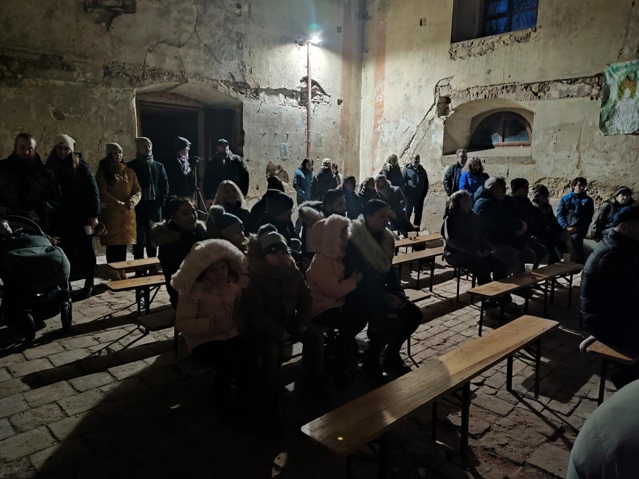 Na akci bylo připraveno drobné pohoštění v podobě cukroví, teplého dětského punče a svařeného vína.